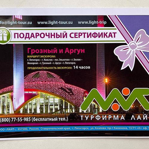 В процессе эфира гид будет задавать Вам вопросы на внимательность и эрудицию по теме экскурсии. Среди тех, кто правильно ответит, будет разыгран подарок: сертификат на экскурсию «Грозный и Аргун».